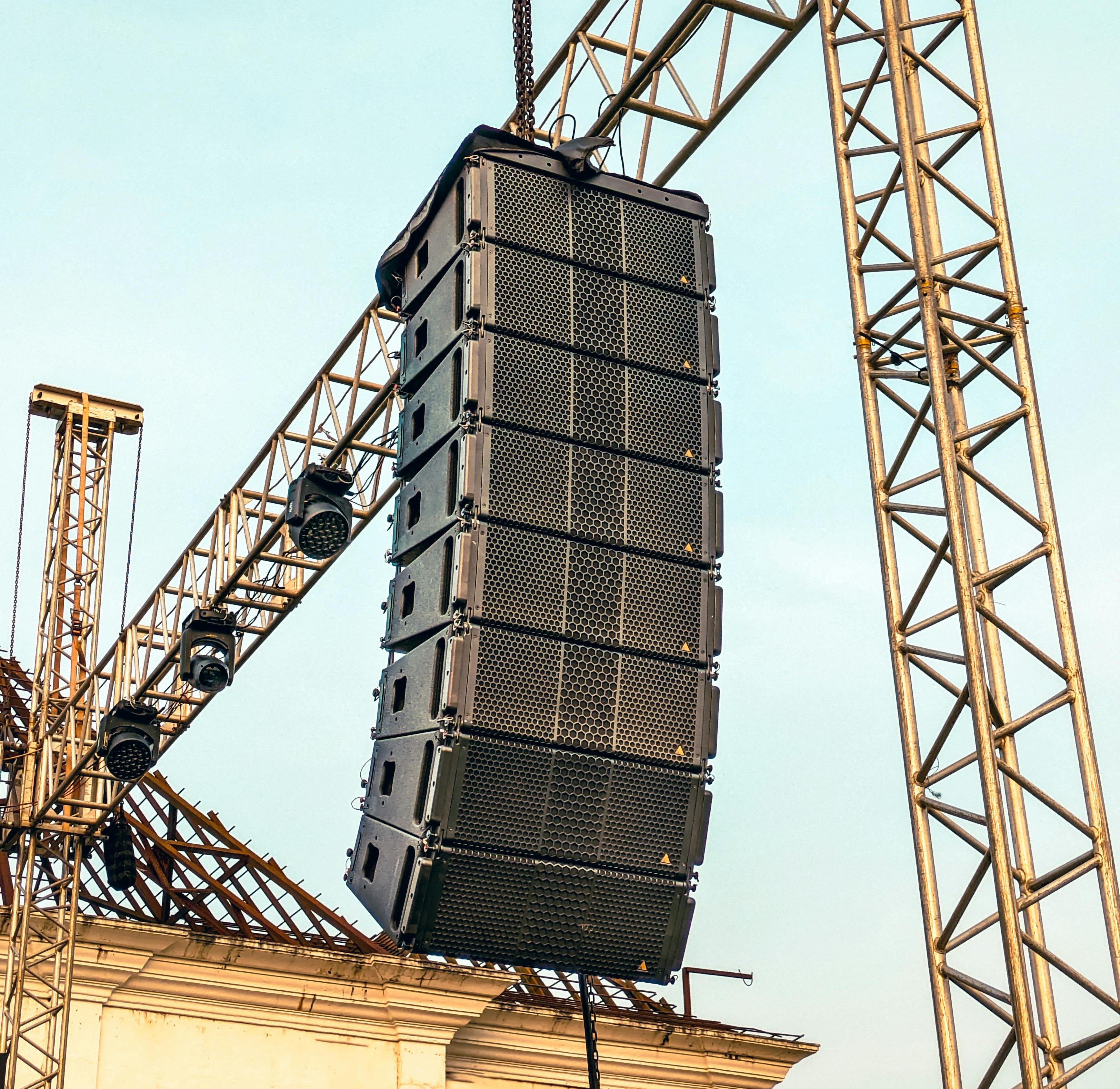 Professional-grade line array speakers for large venue coverage and crystal clear sound distribution.